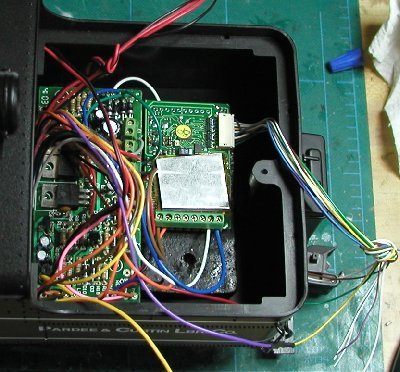 The Lake Town & Shire is operated using Digital Command Control. We use the 8-amp radio-controlled version of the Digitrax Chief on our layout. Since the Chief can operate analog engines using address 00, the first thing we did was lubricate the locomotive and put it on the track. It shorted the system. Continuity testing showed positive between the left and right wheels. That didn't happen with a couple of other locomotives I had laying around that had not been converted to DCC yet. Bummer. But then I pulled out a Bachmann power supply and tried applying power directly to the wheels of the Heisler. It ran! Apparently the Heisler draws so much amperage that the Digitrax Chief thinks there is a short and shuts down the layout. Very interesting. I installed a Digitrax decoder (see below) and the locomotive ran beautifully on my layout. Operation at slow speeds is very smooth. However, new problems developed.